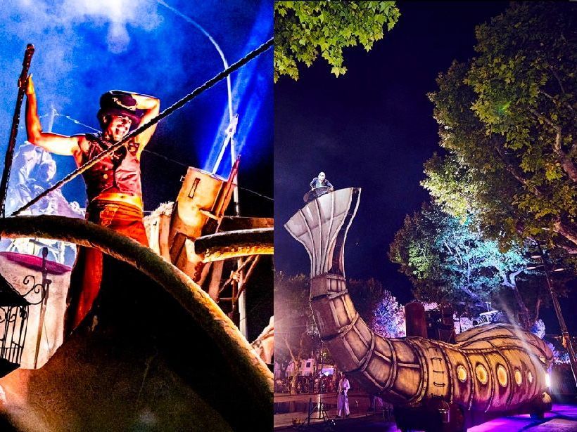 Imagínate un equipo de profesionales del espectáculo en vivo quien, valiéndose de sus experiencias pasadas en todos los ámbitos que lo componen, espectáculos callejeros, teatro, danza, circo, música, recreaciónes históricas… en todas las disciplinas que lo hacen vivir, el sonido, la luz, el video, el decorado, la maquinaria, un día elige de poner en común estas competencias al servicio de creaciones extraordinarias.